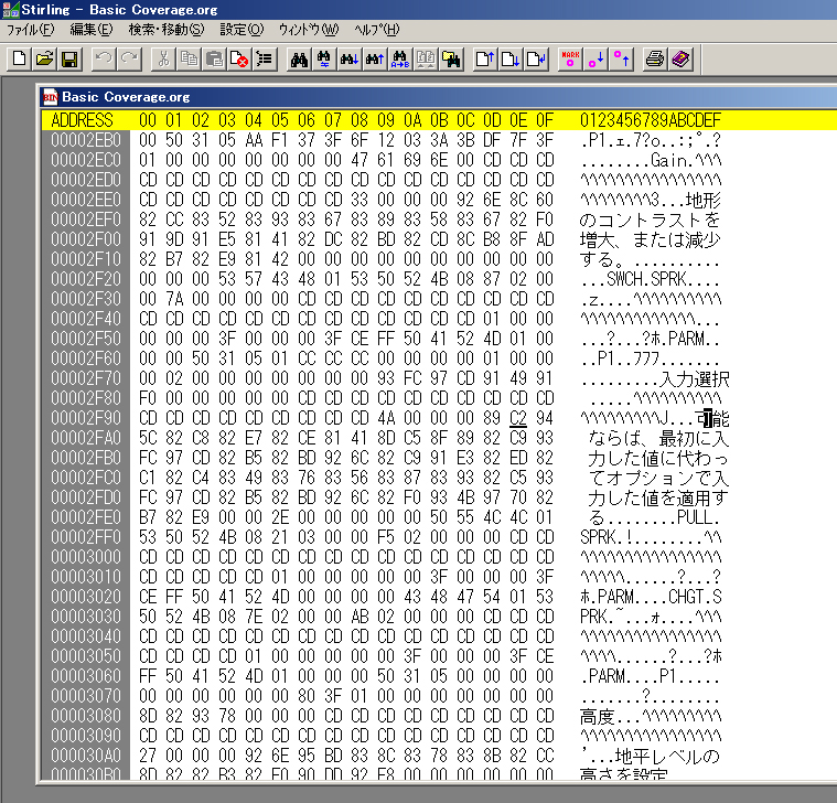 一人でこつこつ進めています 誰か一緒にやりません?w さて、リソースエディタでは限界が来たようで 完全日本語化はソース無しでは出来ないと判断しました が! 無茶をする事で一筋の光が見えてきました なにをしたかというと バイナリエディタで直接文字の打ち変えですw 字数制限がガッチガチなので いじり間違えると起動すらしてくれない恐怖ものです^^; これによって今まで英語でしか 表示できなかった部分が しっかり日本語を表示してくれます んが、しかし ワークビュー画面においては 2バイト文字が対応しておらず 一部文字化けを起しております スティーブンさんにその点の修正依頼をメールしてみましたが 音沙汰無しです(当たり前かw) 日本語化がうまくできれば フリー版を配布したいと思っているのですが 許可してくれるかなー